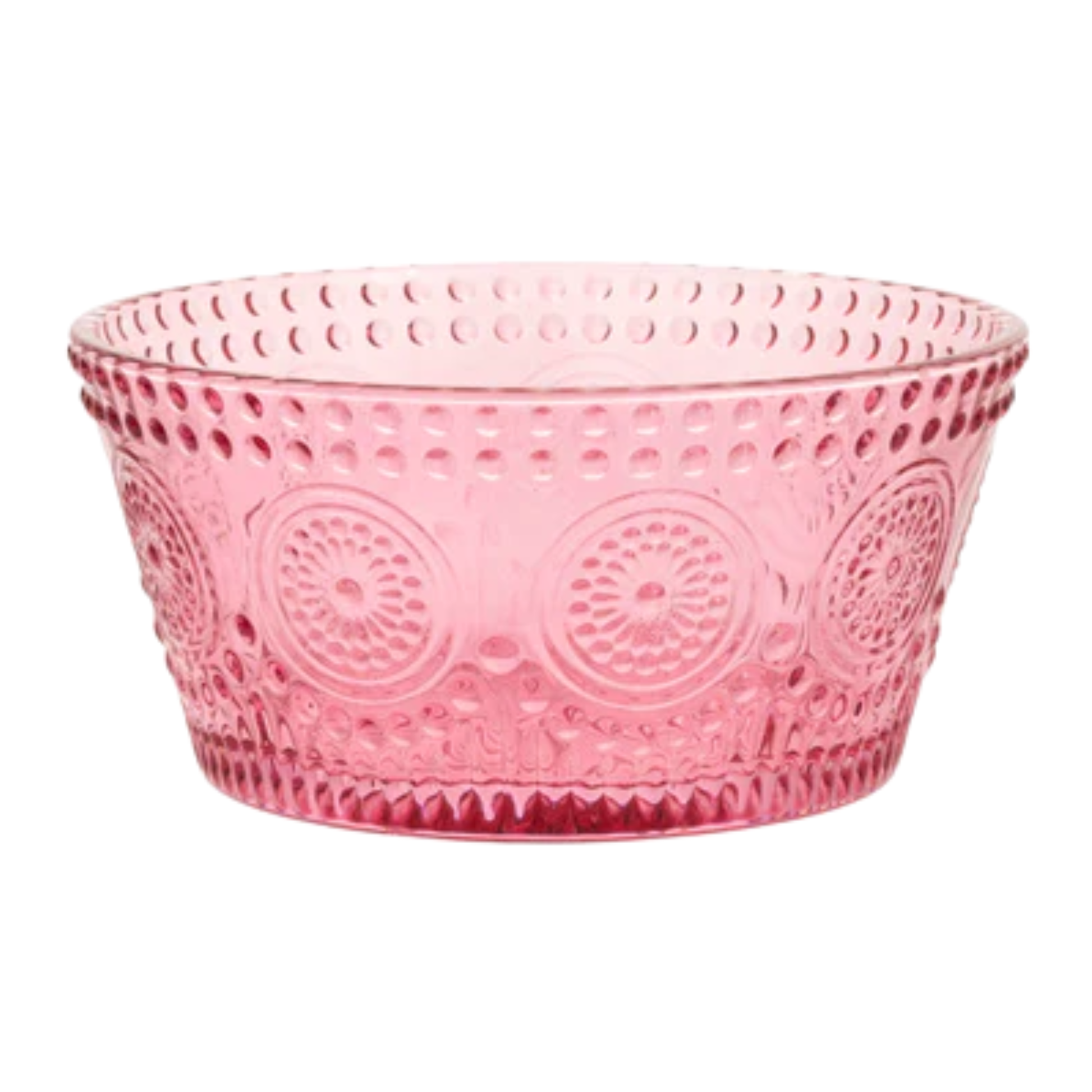 Infuse warmth and personality into your table with the Pink Codi Glass Bowl Small, a charming vessel that celebrates color with vintage-inspired flair. Textured dots and medallions dance across durable patterned glass, creating luminous dimension that elevates even the simplest snacks, sauces, and sides. At 4.75 x 4.75 x 2.25 inches, this rosy-hued bowl strikes the perfect balance between statement piece and practical serveware, pairing beautifully with modern minimalist settings or eclectic, layered tablescapes. Whether you're hosting a casual gathering or adding a touch of joy to everyday meals, this versatile bowl brings instant sophistication and undeniable charm to any occasion.