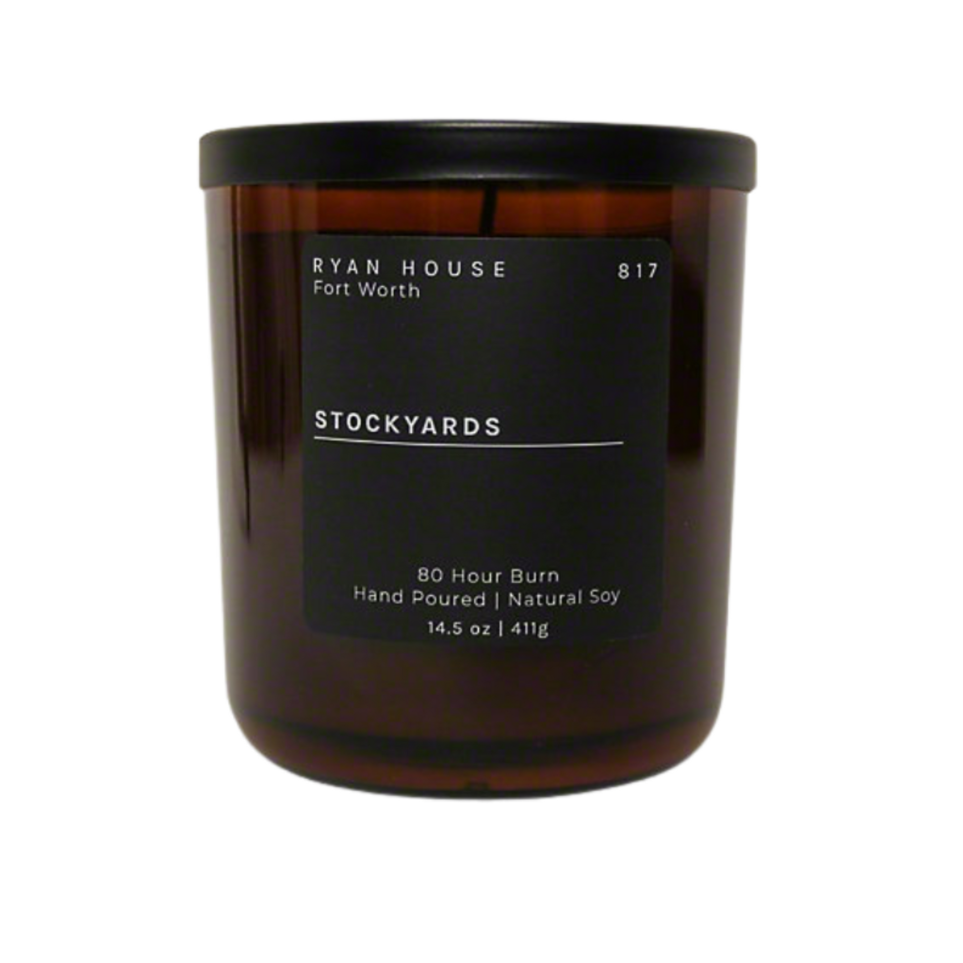 Small Batch Poured, Natural Soy Stockyards is our nod to being FT Worth local, and stays true to our roots. Our version of a dressed up cowboy with bold notes of leather and smoke combine to evoke the atmosphere of old fashions in worn leather chairs making it our most masculine fragrance. 14.5 oz | 80 hour burn.