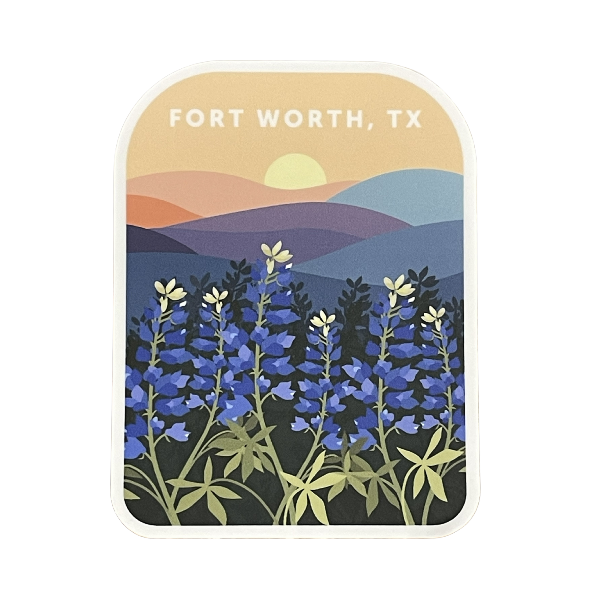 Celebrate the iconic beauty of Fort Worth with this vibrant Bluebonnet Landscape vinyl sticker. Perfect for laptops, water bottles, car windows, or any smooth surface, this durable sticker captures the wildflower charm of Texas hill country. Weather-resistant and fade-proof, it's an ideal way to display your regional pride or gift to fellow Texas enthusiasts.