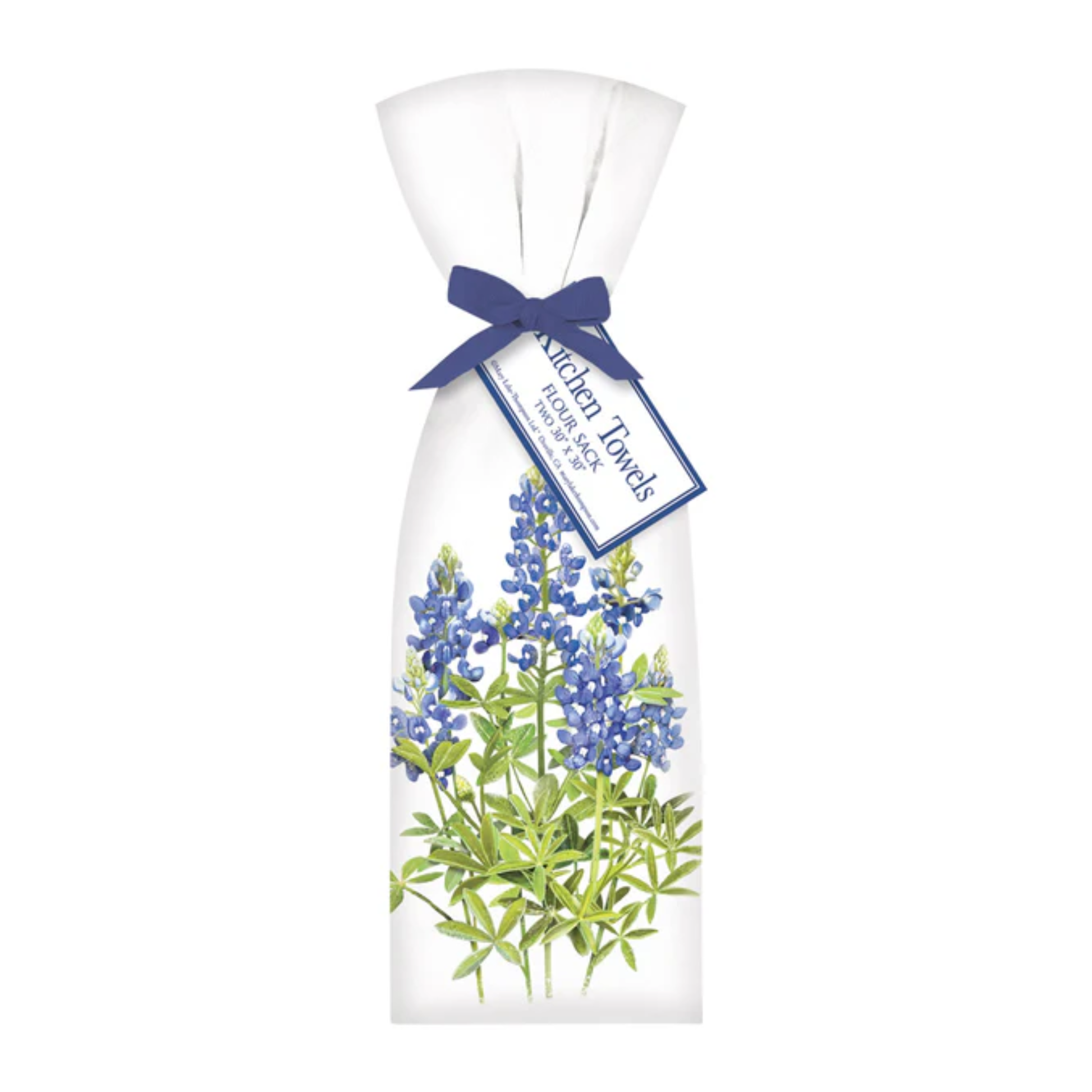 Discover the artistry of Mary Lake-Thompson Ltd with these charming Bluebonnets tea towels. Each set features two hand-folded, 100% cotton flour sack towels (30"x30") adorned with whimsical hand-drawn designs, tied together with a coordinating bow and hang tag. Designed, packaged, and printed in the USA on towels crafted in India, these kitchen essentials combine functionality with gallery-quality artwork. Perfect for everyday use or as a thoughtful gift. Machine wash cold on gentle cycle with mild detergent—no bleach. Air dry or tumble dry without heat; iron on reverse only.